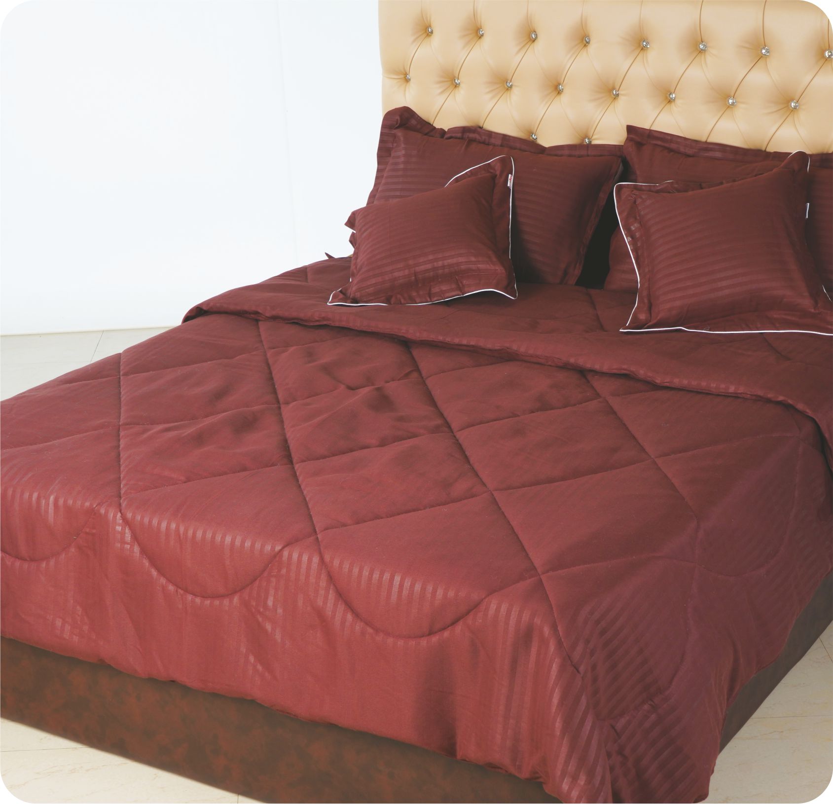 Feels as soft and fluffy as looks, comfy to sleep and easy to care for,thanks to the mix of cotton and polyester .300gsm polyester microfiber wadding inside is covered by 100% cotton fabric quilt.